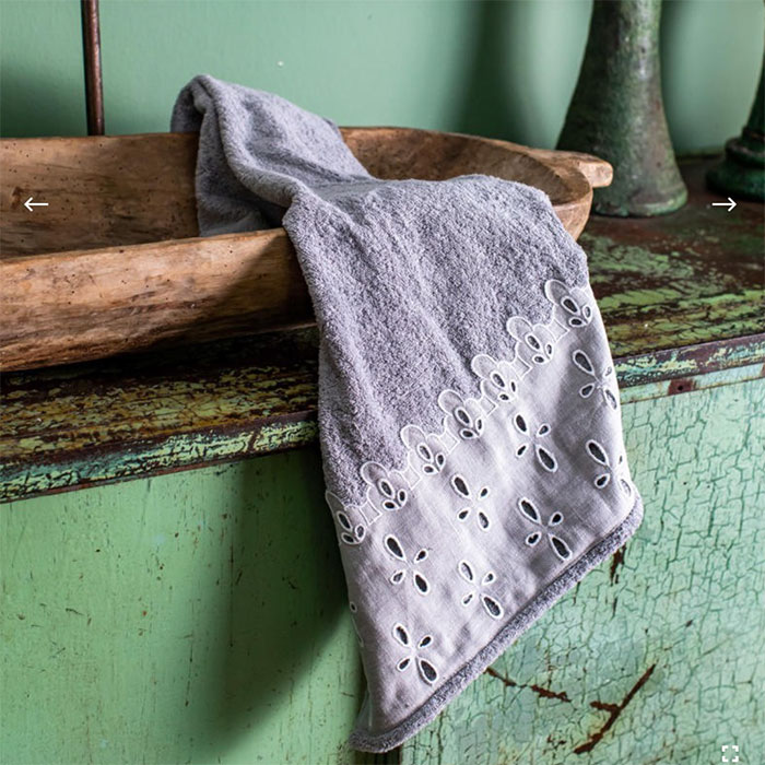 キッチン・バスルームに広げて掛けると素敵です。フリルフェイスタオルより、フリルの部分(5cm程)がないので可愛いサイズのタオルです。