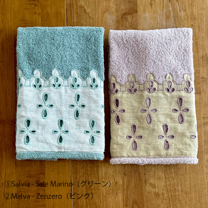 タオルを手でパンパンと叩いて形を整え、アマルフィのデザイン部分は手で伸ばして乾かしてください。