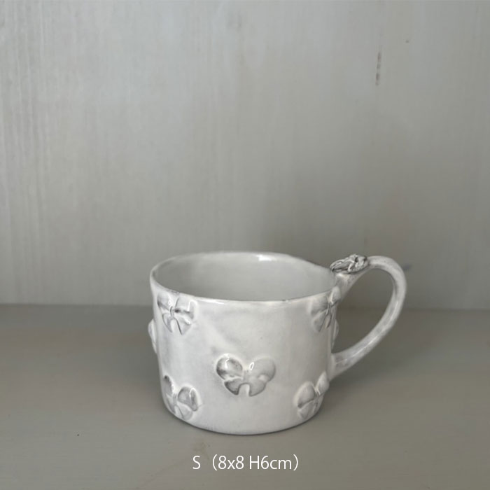 リボンがいっぱいのマグカップ、軽く使いやすくそしてドキドキしてしまうカップです。