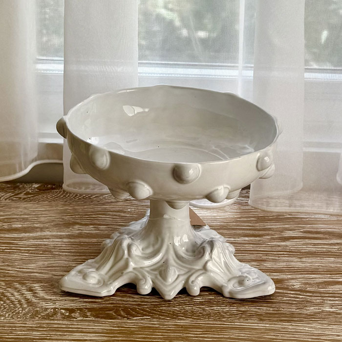 ボタン”のようなカットが施された独特のボウルが、精巧なクラシック調の脚部の上に優雅に据えられています。