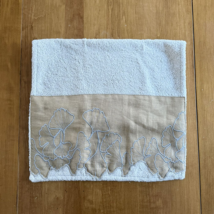 タオルを手でパンパンと叩いて形を整え、アマルフィのデザイン部分は手で伸ばして乾かしてください。