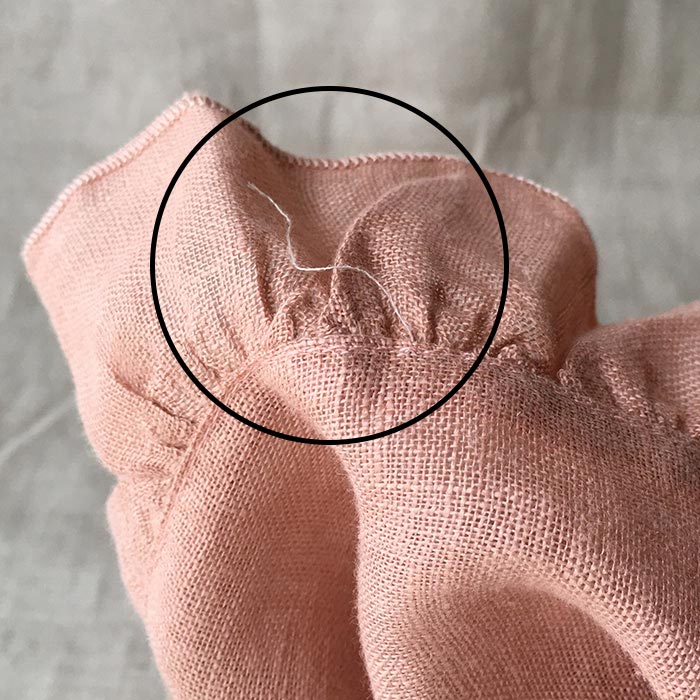 未処理の糸(左)や麻素材特有のネップ(織むら・右)が見られます。