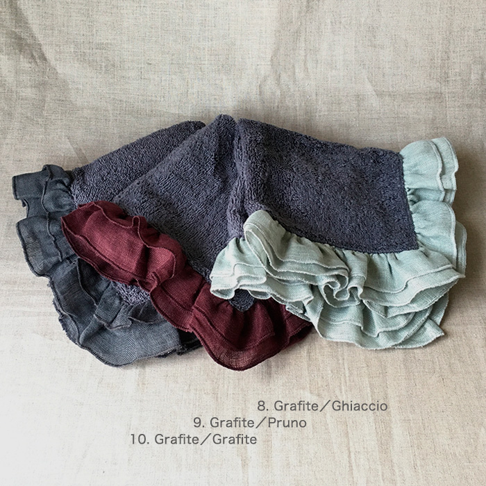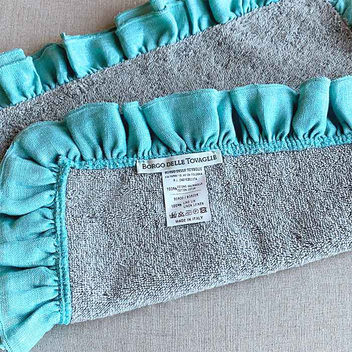 Borgo delle tovaglieフリルハンドタオルGITANE 1. Stone/Azzurro
