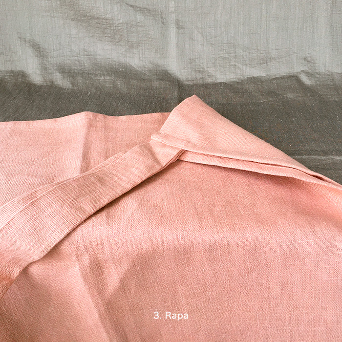 未処理の糸(左)や麻素材特有のネップ(織むら・右)が見られますことを、事前にご了承下さい。