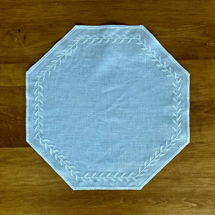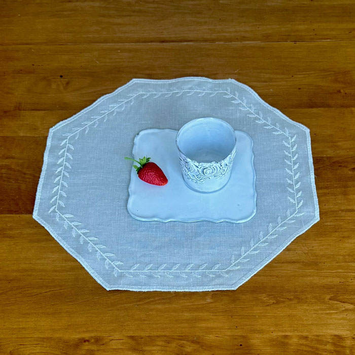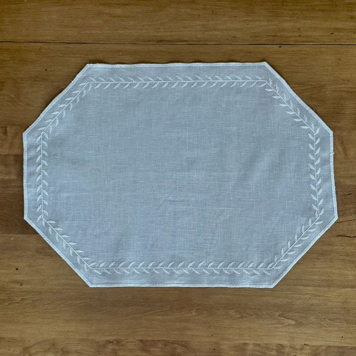 テーブルマットの縁どりに月桂樹の刺繍が施されているように感じています。