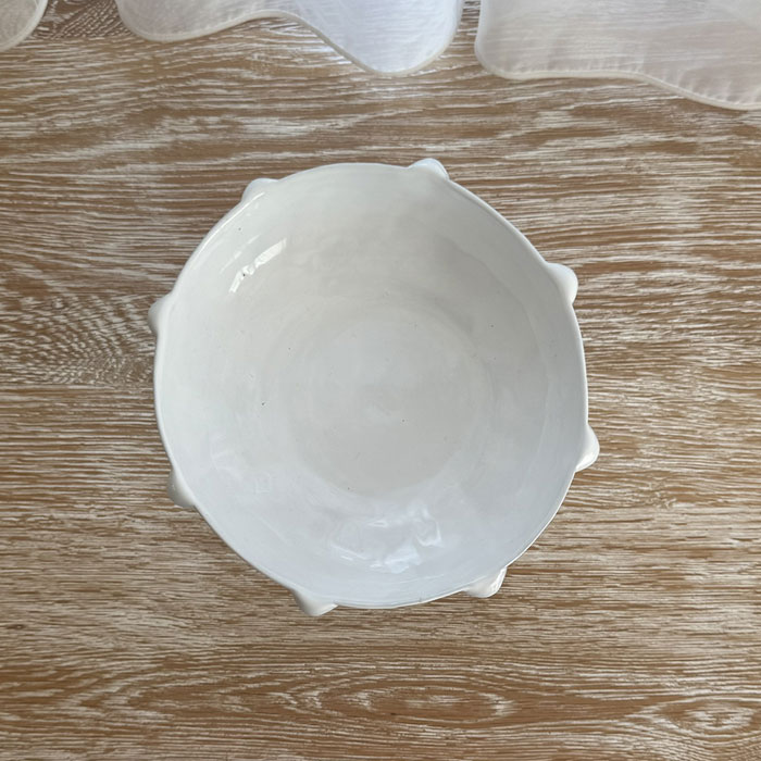このフット付きボウルには、果物やストロベリーのサラダ、春野菜など彩豊かなサラダ、チョコレートムースなどスイートをそして写真のmini choux à la crème(ミニ・シュー・ア・ラ・クレーム)など感性で楽しみながら盛りつけて楽しんで頂けましたら何よりです。
