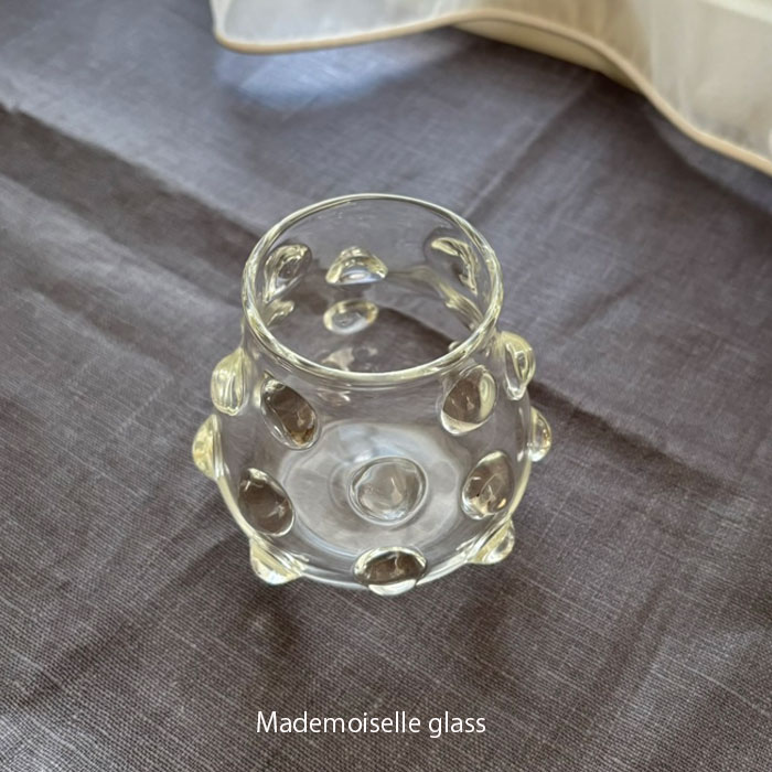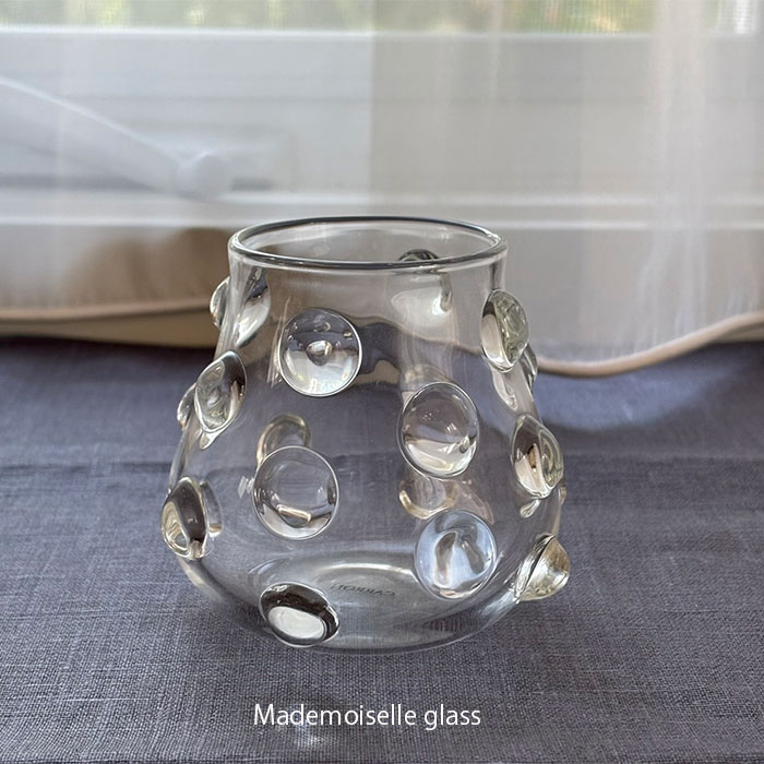 Mademoiselle(マドモアゼル)シリーズの特徴的なデザイン、ドットを全体にあしらわれていることにより、持ちやすく安定感のあるグラスです。